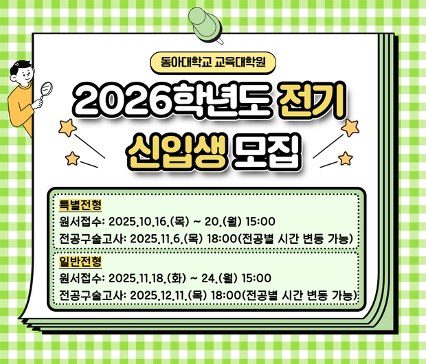 팝업존 이전 장면 01 다음 장면 정지 재생 SEARCH 검색 통합정보시스템 서식함 가상대학 증명서발급 찾아오시는길 학사일정 학위논문 작성안내 연구보고서 작성안내 NOTICE 공지사항 더보기 연구원 공지사항 더보기 미래 사회를 선도하는 교육대학원으로, 교직 전문성과 미래 역량을 함께 키우는 곳 Dong-A Graduate School of Education 보러가기 교육연수원 규정 교육연수원 규정 더보기 배너모음 이전 장면 정지 재생 다음 장면
